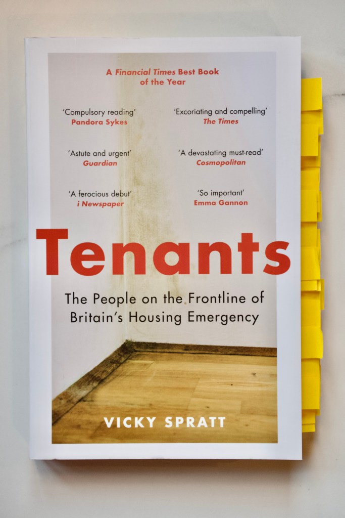 This book was a sobering look at the frontline of Britain’s housing emergency. Even in a mostly up-to-code place with a decent landlord and a rent and income that allows one to afford to live in a place and heat it and feed themselves, renting can feel temporary and unstable. You don’t know if the landlord is going to decide to sell up and boot you out or if that new Tube station opening will motivate them to add a few extra hundred pounds a month to your rent.