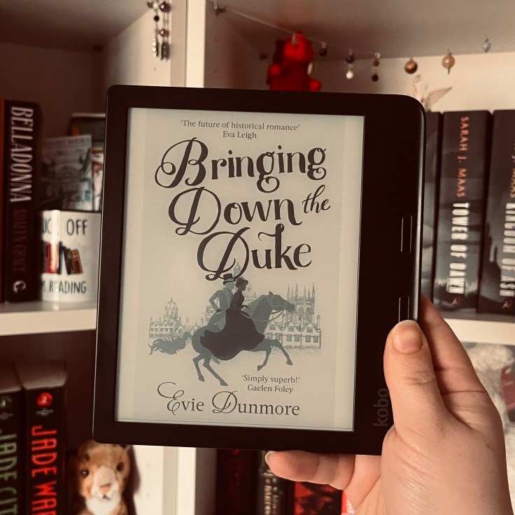 This book was a delightful find. It’s set during the Victorian period in England, and follows a young woman who is one of the first to enrol at Oxford and is sponsored by a suffragist group that is seeking to amend the Married Women’s Property Act, which transfers ownership of all of a woman’s property (including herself) to her husband upon marriage. As part of their fight, the FMC, Annabelle, is sent to convince a Tory duke to back their cause, and as this is a historical romance, I don’t need to tell you what happens next.